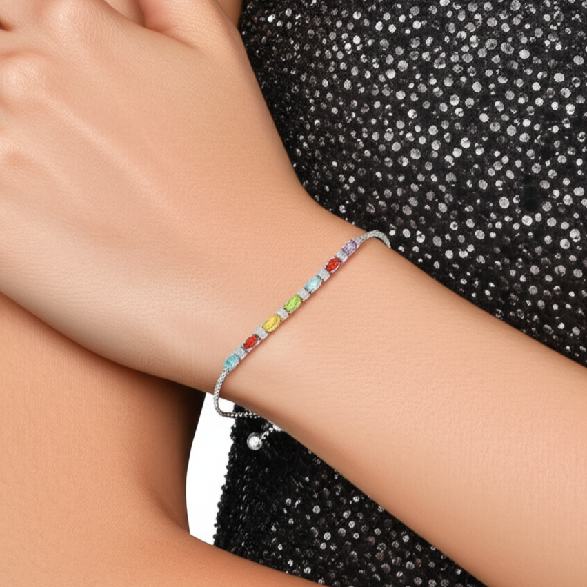 Made with a sturdy adjustable box chain for a very easy and comfortable wear. Fits on all wrist sizes up to 9 inches.