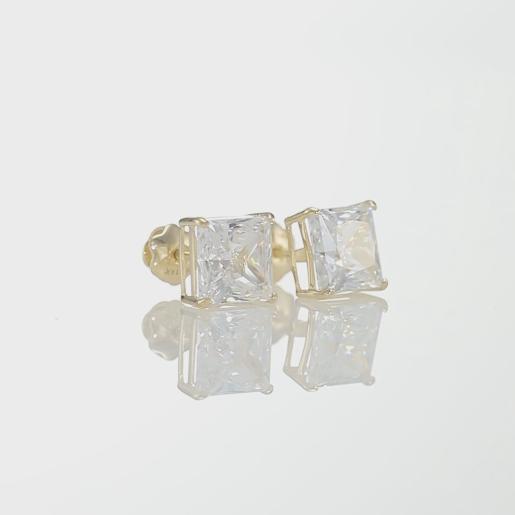 14K Yellow Gold Lab Diamond Princess-Cut Stud Earrings, Screwback
