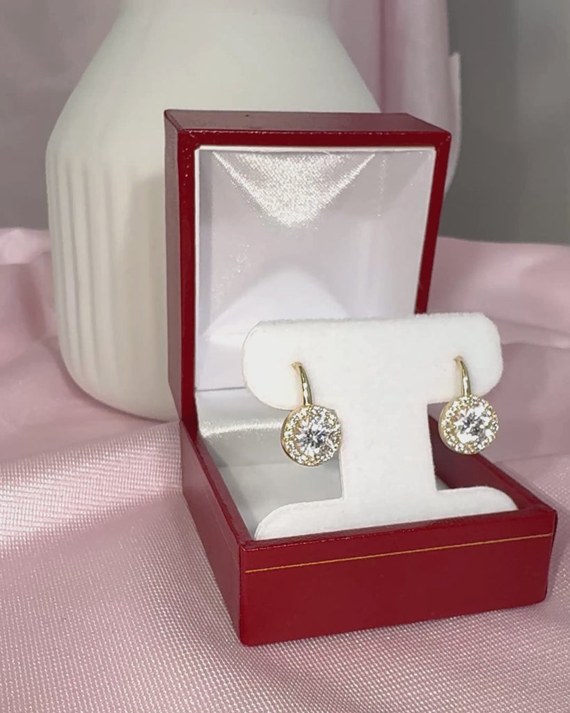 14K Gold Round Brilliant-Cut Halo Drop Earrings With Lever backs
