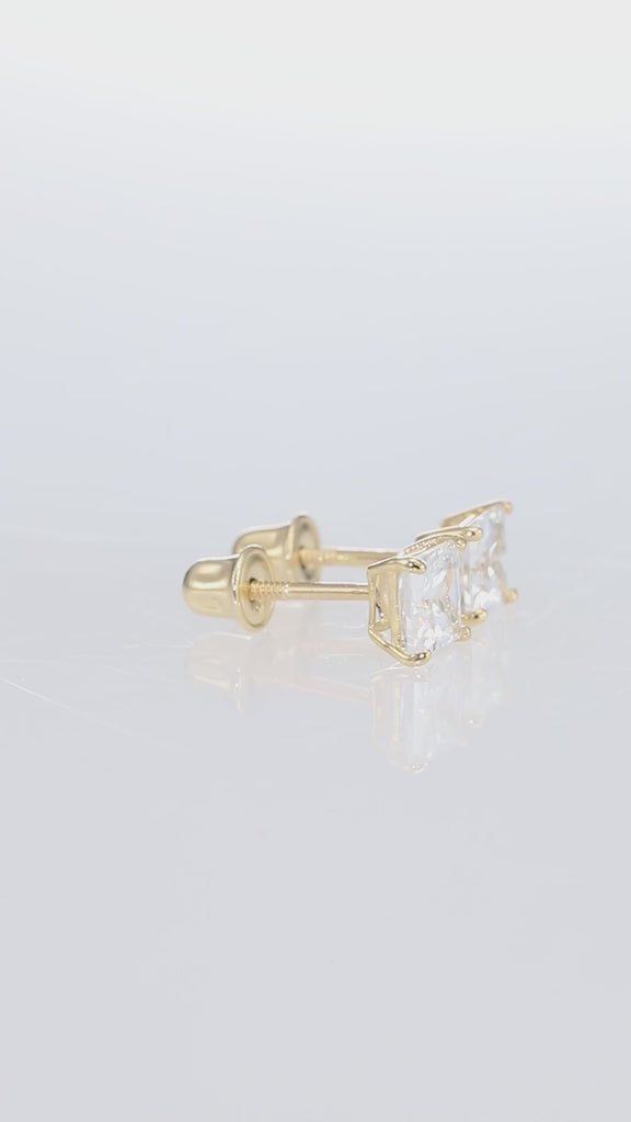 14k Yellow Gold Square Zirconia Stud Earrings, Screwback